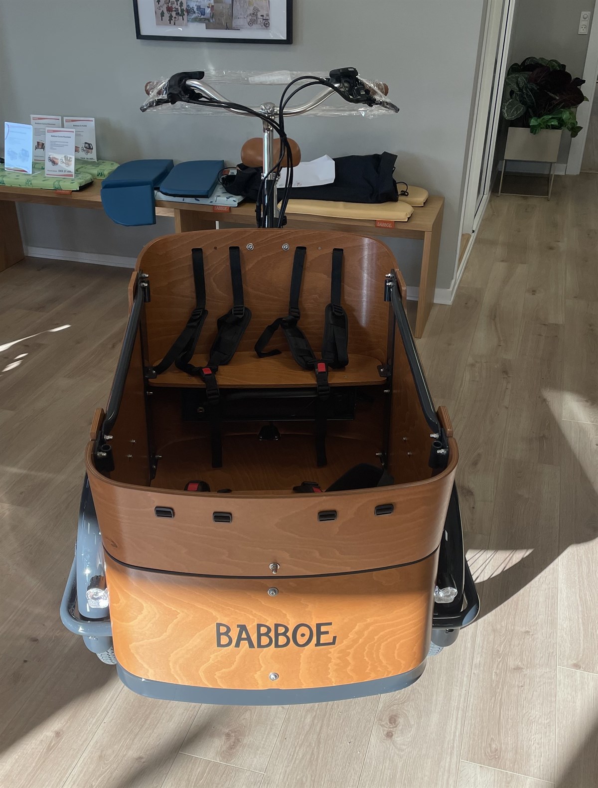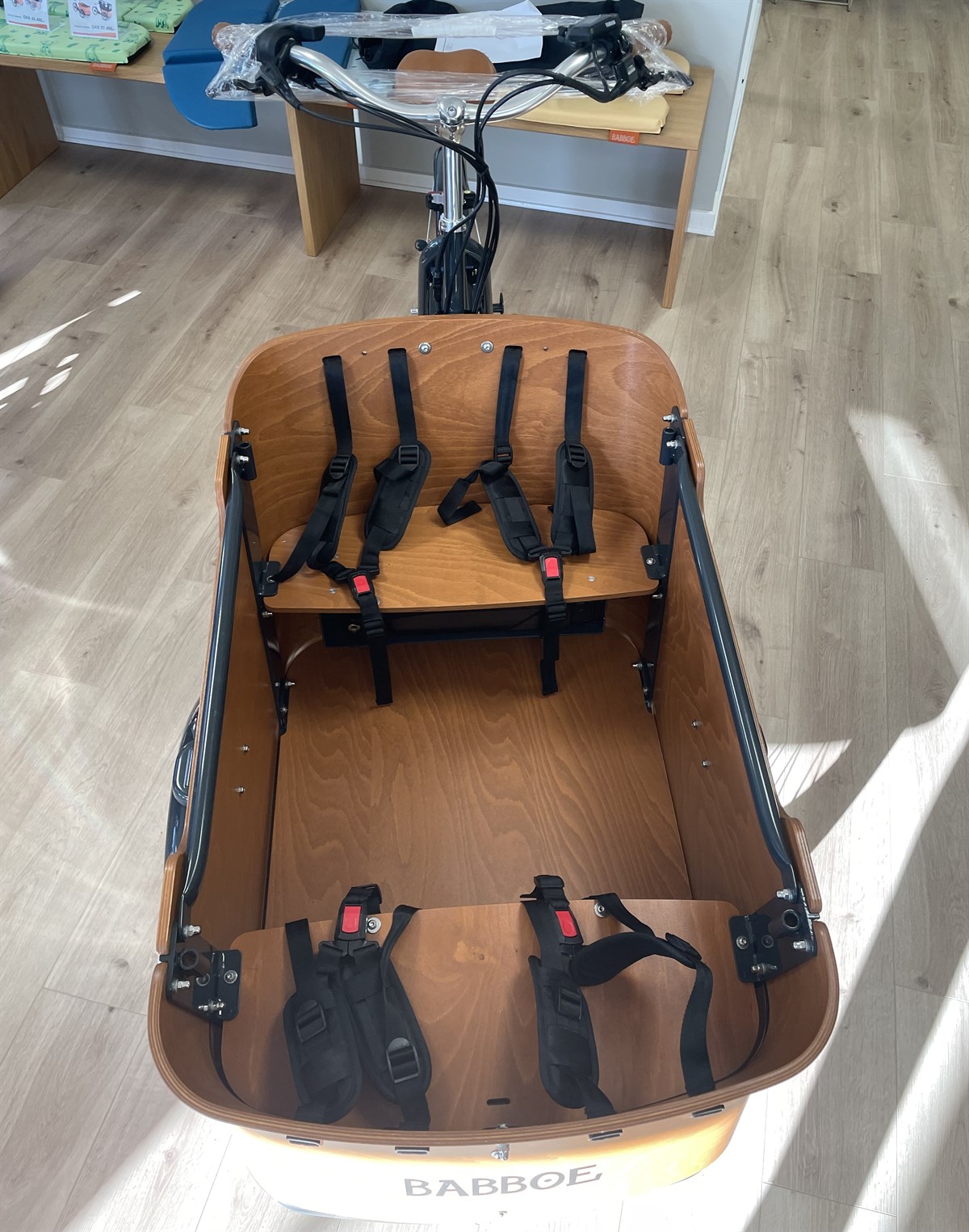 Alle Babboe ladcykler er monteret med bænke, seler, for- og baglygte, forsikringsgodkendt lås, 100% samlet og køreklar & fragten er selvfølgelig helt gratis ved køb af en ladcykel.