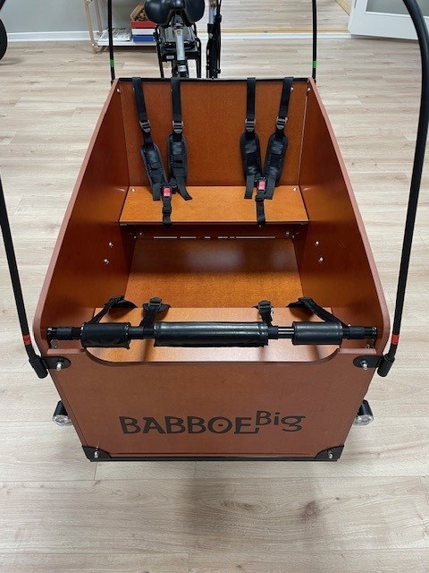 Alle Babboe ladcykler er monteret med bænke, seler, for- og baglygte, forsikringsgodkendt lås, 100% samlet og køreklar & fragten er selvfølgelig helt gratis ved køb af en ladcykel.
