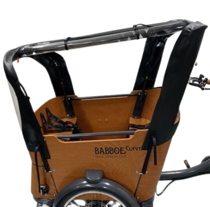 Til Babboe Curve tilbydes også en XXL høj kaleche. Den er specielt egnet til kørsel med større børn i ladkassen. XXL kalechen er ca. 12 cm. højere end en standard kalechen. Ved styret er der ca. 82 cm fra bænk til toppen af kalechen. I fronten er der ca. 72 cm. fra bænken til toppen af kalechen.